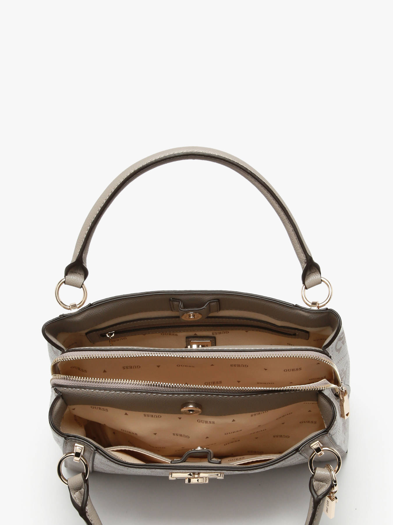 Le sac porté main KARNILLA LOGO GUESS en P.U est un modèle à la fois élégant et fonctionnel. Son extérieur est équipé d’une poche au dos pratique ainsi que d’une fermeture zippée pour sécuriser vos effets personnels. La hauteur de sa anse de 11 cm permet un porté confortable à la main, tandis que la bandoulière réglable et amovible offre la possibilité de le porter en bandoulière selon vos envies. À l’intérieur, ce sac se compose de trois compartiments distincts, complétés par deux poches simples et une poche éclair, facilitant l’organisation de vos essentiels. Ce sac polyvalent s’adapte parfaitement à un usage quotidien tout en apportant une touche de style à votre tenue.