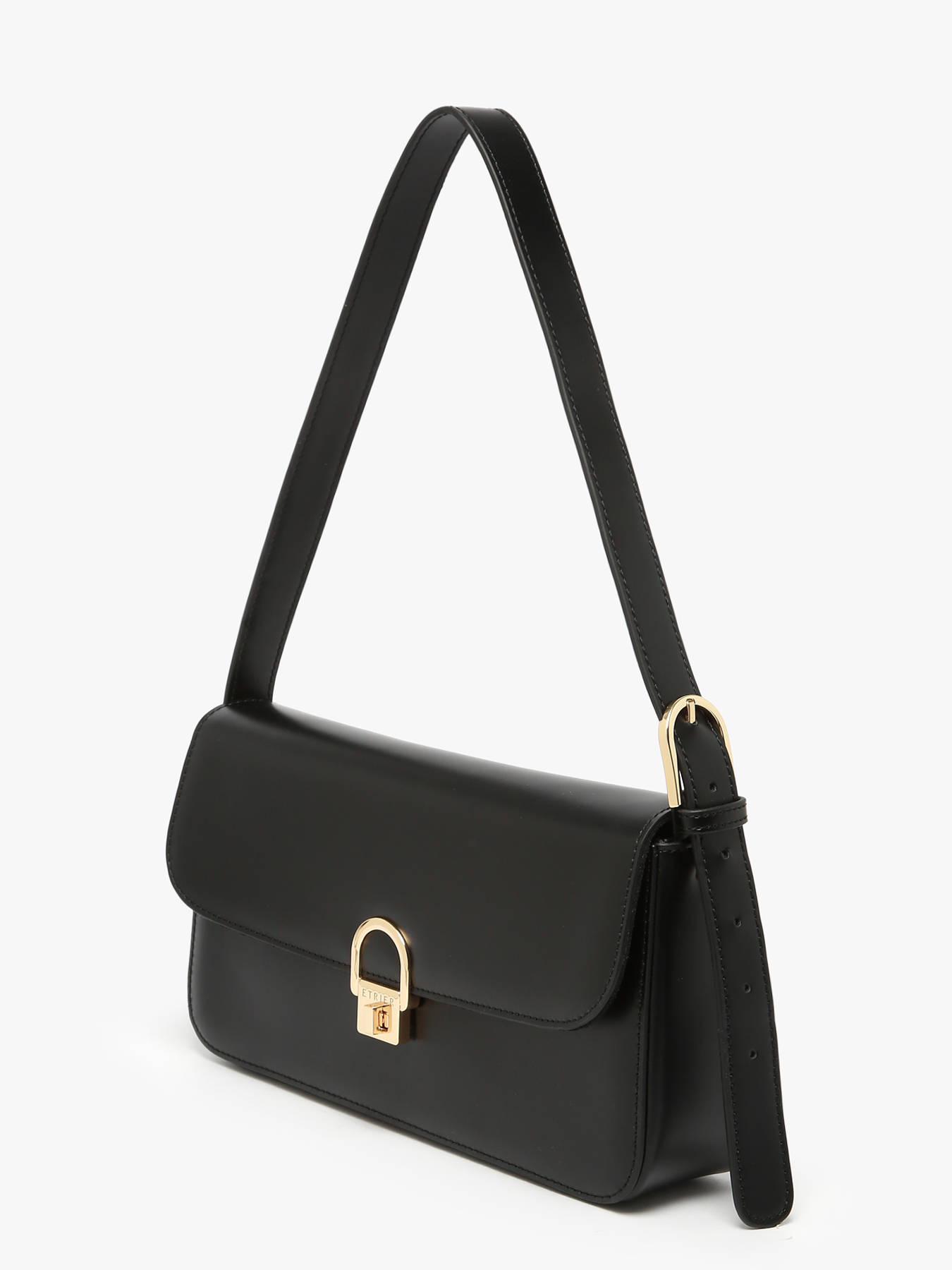 Le sac porté épaule ETRIER de la ligne ALTAIR revisite avec élégance la forme baguette cette saison. Il se distingue par une poche au dos et une fermeture par rabat ornée d’un fermoir doré, emblématique de l’identité ETRIER. Sa anse, réglable sur le côté, permet d’ajuster facilement la hauteur du porté pour un confort optimal. L’intérieur, pensé pour le quotidien, dispose d’une poche plaquée et d’une poche zippée, alliant praticité et raffinement.