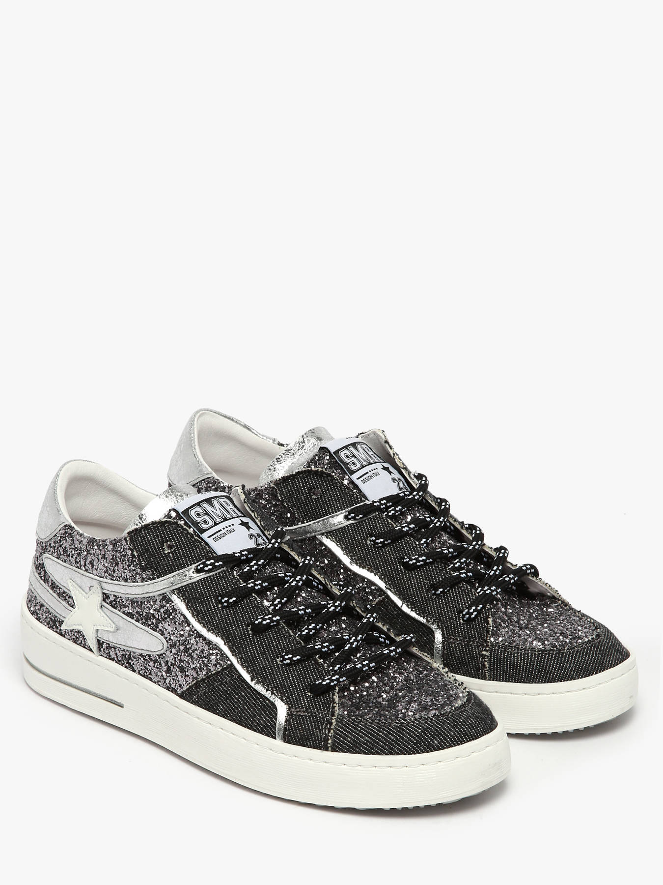 Les sneakers VANA de Semerdjian allient audace et originalité avec un jeu de matières unique, combinant paillettes scintillantes et effet jean sur l’avant. Leur dessus en cuir et synthétique offre à la fois élégance et modernité, tandis que la doublure en cuir et synthétique garantit un confort optimal tout au long de la journée. La semelle intérieure en cuir, amovible, permet un ajustement personnalisé pour un bien-être maximal. Fermées par des lacets, ces sneakers assurent un maintien parfait et un style affirmé. Idéales pour celles qui souhaitent apporter une touche de brillance et de caractère à leurs tenues casual ou plus habillées.