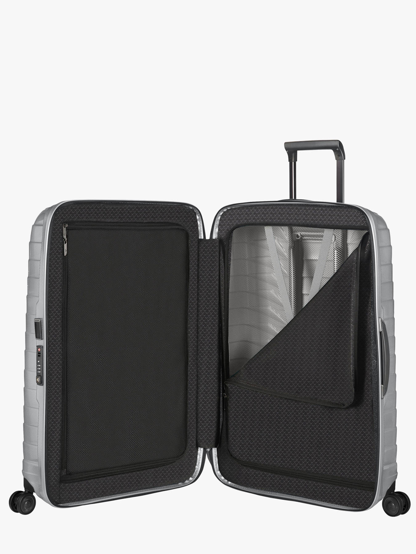 La valise Samsonite Proxis 69 cm incarne l’alliance parfaite entre innovation, solidité et légèreté. Fabriquée en Europe à partir du matériau exclusif Roxkin™, elle reprend sa forme après un choc et offre une résistance exceptionnelle grâce à sa structure multicouche. Avec un poids plume de 2,8 kg pour un volume de 75 L, elle permet de transporter environ 15 kg de manière sécurisée. Son design élégant intègre une serrure TSA, quatre doubles roues silencieuses multidirectionnelles, une poignée télescopique à double tube ainsi qu’une poignée haute et une latérale pour une manipulation aisée. Le porte-adresse rétractable et les fermetures à glissière robustes ajoutent à sa praticité. À l’intérieur, deux compartiments spacieux avec séparateurs zippés, poches et sangles croisées maintiennent vos affaires organisées. Idéale pour les voyages d’une à deux semaines, la Proxis 69 cm vous garantit confort, maniabilité et style, tout en bénéficiant d’une garantie mondiale limitée de 10 ans.